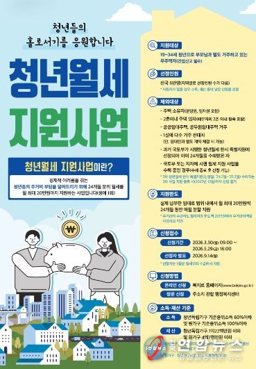 이번 사업은 요건을 충족하는 청년들에게 최장 24개월간 매월 최대 20만 원씩, 총 480만 원의 월세를 지원하는 내용이다.