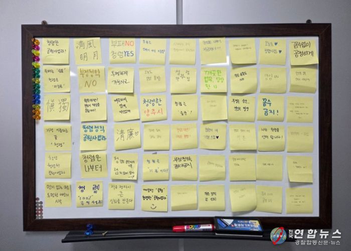 전국연합뉴스 박점규 기자 | 양주시 공원사업과에서는 지난 30일 직원들의 청렴 실천을 강화하기 위해 청렴 화이트보드 캠페인을 실시했다.
