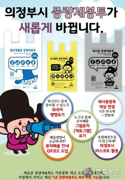 전국연합뉴스 박점규 기자 | 의정부시는 시민 누구나 쉽고 정확하게 분리배출을 할 수 있도록 ‘알기 쉬운 종량제봉투’ 디자인을 새롭게 도입한다.
