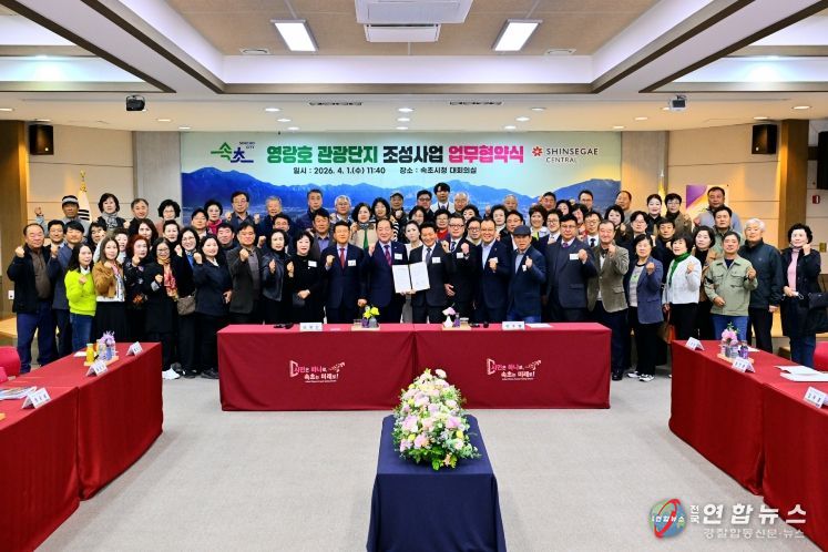 전국연합뉴스 김생수 기자 | 속초시는 2026년 4월 1일 시청 대회의실에서 영랑호 관광단지 조성사업의 성공적인 추진을 위해 민간사업자인 ㈜신세계센트럴과 업무협약을 체결했다.