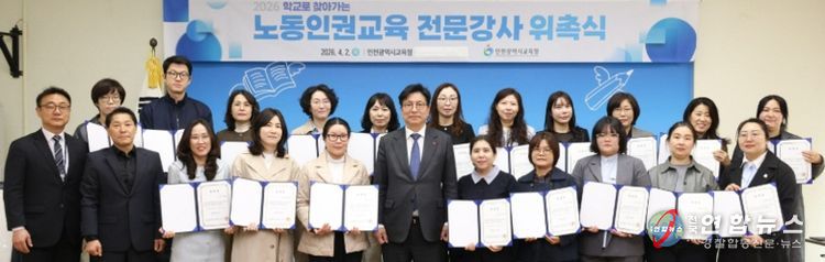 전국연합뉴스 김장수 기자 | 인천광역시교육청은 2일 학생들이 노동의 가치를 배우고 인권 감수성을 함양할 수 있도록 돕는 ‘2026학년도 학교로 찾아가는 노동인권교육 전문강사단’ 위촉식을 개최했다.