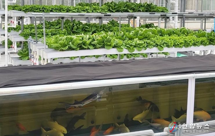 아쿠아포닉스는 물고기 양식과 수경재배를 결합해, 물고기 배설물로 식물을 키우고 식물이 정화한 물을 다시 물고기에게 돌려보내는 순환형 친환경 농업 시스템이다. 물고기 배설물이 박테리아에 의해 질산염 등 식물 영양분으로 변환되고, 식물이 이를 흡수하면서 물이 정화돼 다시 물고기 수조로 돌아간다. 물을 95~99%까지 재사용해 물 사용량이 적고, 화학비료·농약을 거의 쓰지 않아 친환경적이다.