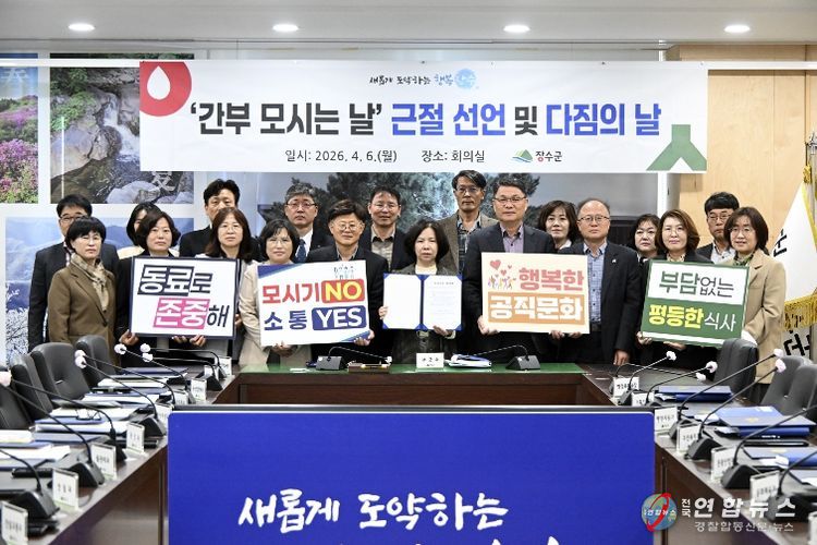 전국연합뉴스 최성용 기자 | 장수군은 6일 군청 회의실에서 공직사회 내 불합리한 관행을 개선하고 수평적인 조직문화를 정착시키기 위한 ‘간부 모시는 날’ 근절 선언 및 다짐의 날 행사를 개최했다고 밝혔다.