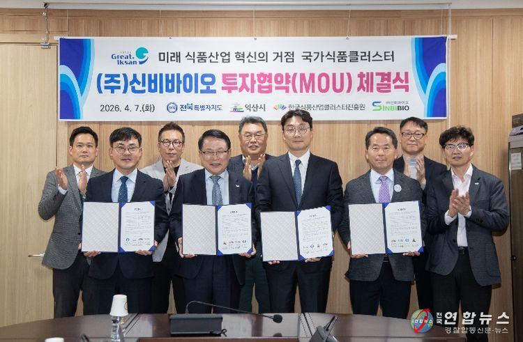 익산시는 7일 ㈜신비바이오(대표 이강원)와 국가식품클러스터 투자협약을 체결했다. 이날 협약에는 전북특별자치도, 한국식품산업클러스터진흥원도 함께 했다.