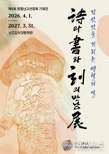 ‘詩와 書와 刻의 만남 展’은 2026년 4월 1일부터 2027년 3월 31일까지 난고김삿갓문학관 1층 다목적실과 2층 기획전시실에서 열리며, 매주 월요일은 휴관이다.