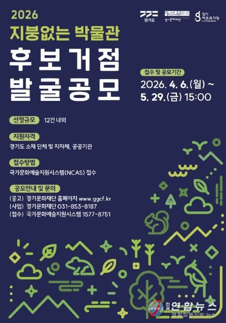 전국연합뉴스 조민준 기자 | 경기도와 경기문화재단은 대표적인 경기도 지역문화 브랜드인 ‘지붕없는 박물관’ 사업의 지속 가능한 운영 기반을 마련하고, 지역의 잠재적 문화 자산의 발굴과 활용을 위해 ‘2026년 지붕없는 박물관 후보거점 발굴 공모’를 추진한다.