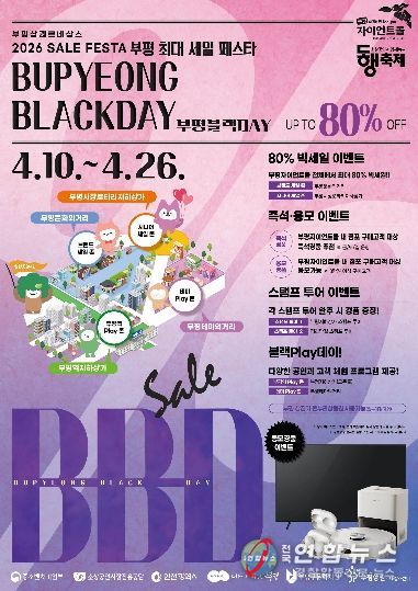 구는 오는 10일부터 26일까지 17일간 부평상권르네상스 사업구역 전역에서 ‘2026년 상반기 부평블랙데이(BB-DAY)’ 공동세일 행사를 진행한다고 밝혔다.
