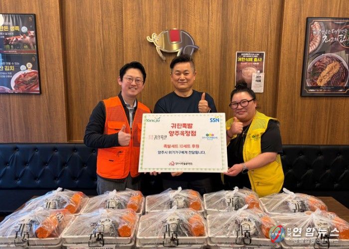 전국연합뉴스 박점규 기자 | 지난 9일, 양주시무한돌봄희망팀은 양주시상인회협동조합의 연계로‘귀한족발 옥정점’을 통해 족발 10세트를 취약계층 및 위기가구에게 전달했다.