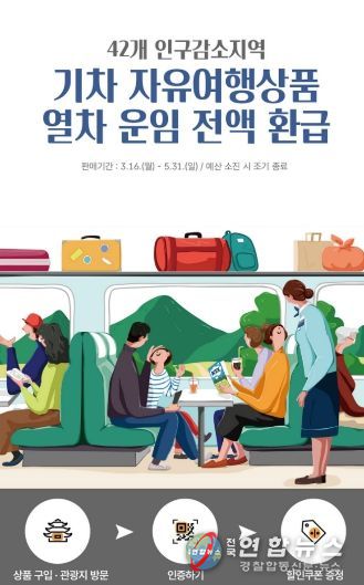 한편 코레일은 ‘여행가는 달(4월 1일~5월 31일)’을 맞아 영월, 제천, 정선, 단양 등 42개 인구감소지역 방문객에게 열차운임 100% 환급 혜택을 제공한다.