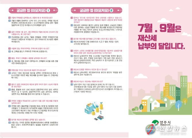 전국연합뉴스 김삿갓 기자 | 영주시는 2026년 7월 정기분 재산세 부과를 앞두고 시민들의 세금 납부 이해도를 높이고 편의를 제공하기 위해 재산세 안내 리플릿을 제작·배부한다.