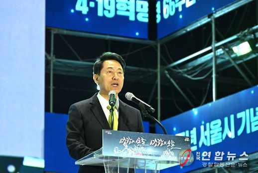 전국연합뉴스 김태연 기자 | 오세훈 서울시장은 18일 오후 7시 광화문광장 육조마당에서 열린 ‘4‧19혁명 66주년 서울시 기념행사’에 참석했다.