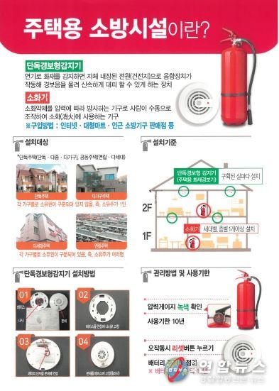 이에 따라 천안서북소방서는 공동주택과 단독주택을 대상으로 소방시설 설치 안내와 점검 홍보를 지속적으로 추진하고 있다.
