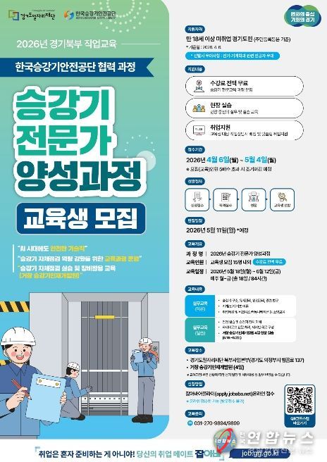 전국연합뉴스 조민준 기자 | 경기도일자리재단은 승강기 전문 인력 양성을 통해 일자리 문제 해결과 지역경제 활성화를 추진하고자 ‘2026년 승강기 전문가 양성 과정’ 교육생을 모집한다고 21일 밝혔다.