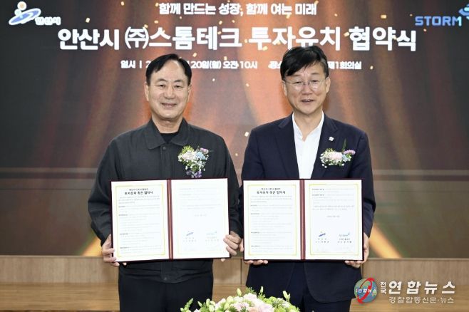 전국연합뉴스 이명후 기자 | 안산시는 지난 20일 코스닥 상장기업 ㈜스톰테크와 제2공장 신축 및 투자 확대를 위한 협약을 체결했다고 21일 밝혔다.