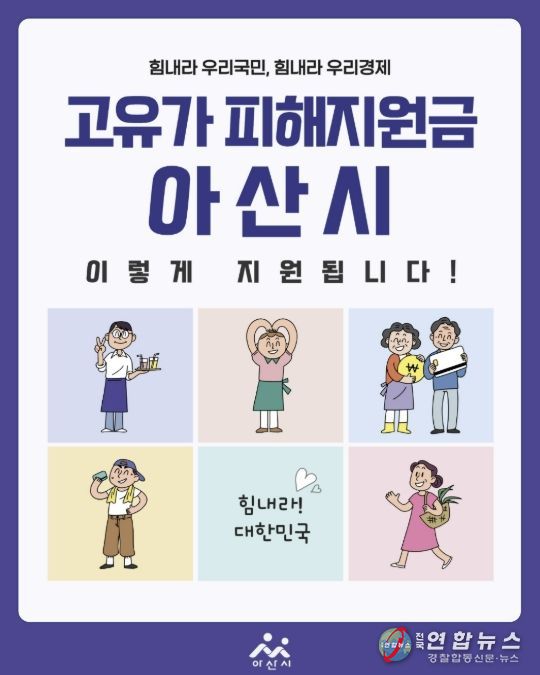 전국연합뉴스 김용태 기자 | 아산시가 고유가·고환율·고물가로 인한 시민들의 생활 부담을 완화하고 지역경제에 활력을 불어넣기 위해 오는 4월 27일부터 ‘고유가 피해지원금’ 1차 신청 접수와 지급을 시작한다.