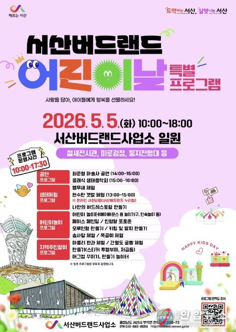 전국연합뉴스 김용태 기자 | 충남 서산시는 오는 5월 5일 ‘서산버드랜드 어린이날 특별프로그램’을 운영한다고 밝혔다.