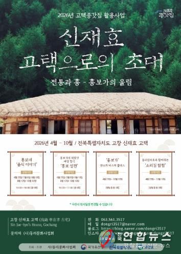 전국연합뉴스 김현호 기자 | 고창군이 (사)동리문화사업회와 국가유산청 고택·종갓집 활용사업으로 ‘신재효 고택으로의 초대’를 고창 신재효 고택과 판소리공원 일대에서 오는 25일부터 10월까지 본격 운영한다고 밝혔다.