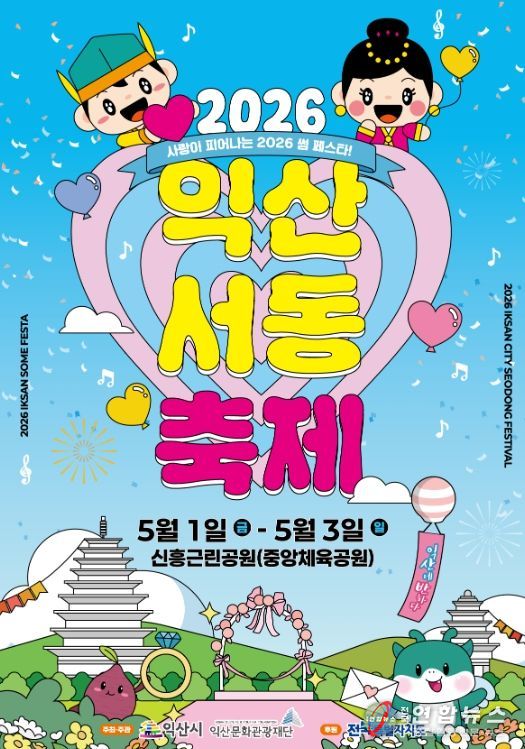 전국연합뉴스 최성용 기자 | 익산시가 백제 무왕(서동)과 선화공주의 국경을 초월한 사랑 이야기를 담은 '2026 익산 서동축제'를 오는 5월 1일부터 3일까지 개최하며 문화도시 익산의 위상을 높인다.