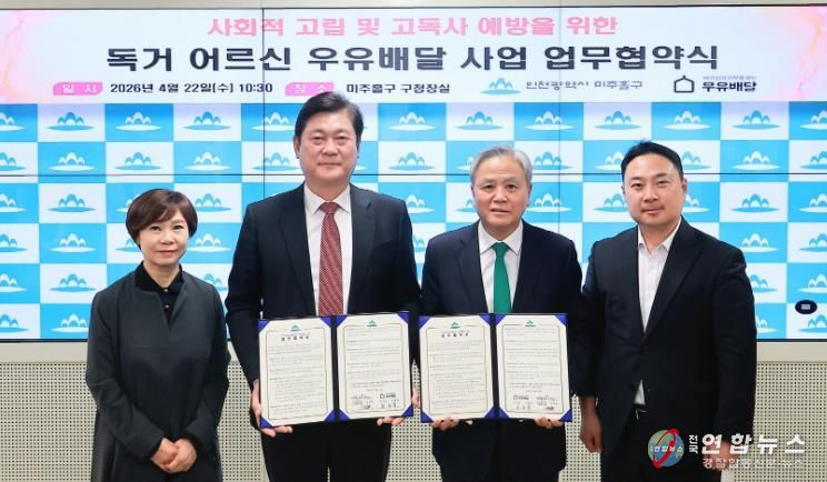 전국연합뉴스 박우배 기자 | 인천 미추홀구는 22일 (사)어르신의 안부를 묻는 우유배달과 독거 어르신의 건강한 생활 지원 및 고독사 예방을 위한 ‘어르신의 안부를 묻는 우유배달 사업’ 업무협약을 체결했다.
