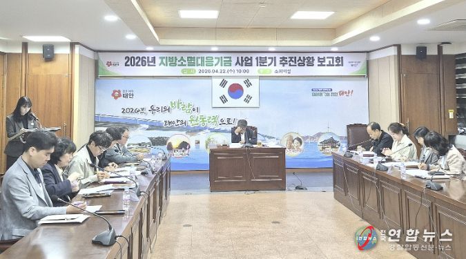 전국연합뉴스 김영대 기자 | 태안군이 지난 22일 군청 소회의실에서 실무 팀장 등이 ‘지방소멸대응기금 사업 1분기 추진 상황 보고회’를 개최했다.