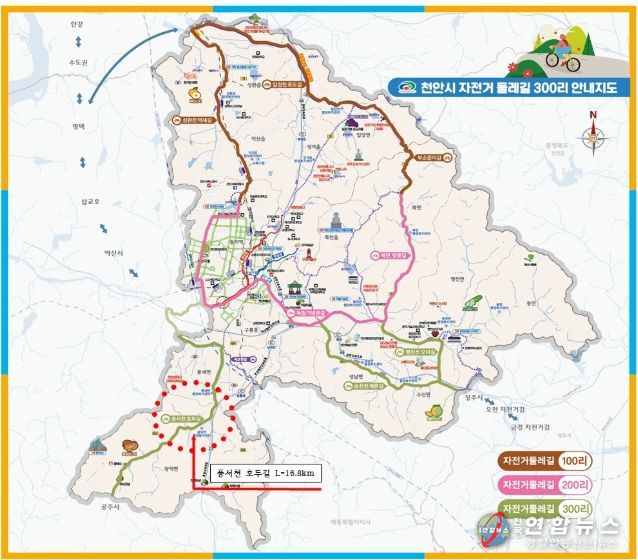 전국연합뉴스 김대환 기자 | 천안시의‘자전거 둘레길 300리 조성사업’이 최종 단계에 돌입했다.
