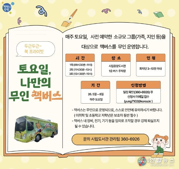 시립도서관 관계자는 “책버스가 단순히 책을 빌리는 공간을 넘어, 시민들에게 쉼과 여유를 주는 ‘우리 동네 아지트’ 같은 공간이 되길 바란다”며, “앞으로도 유휴 자원을 활용한 창의적인 문학 프로그램을 지속적으로 발굴해 나가겠다”고 전했다.
