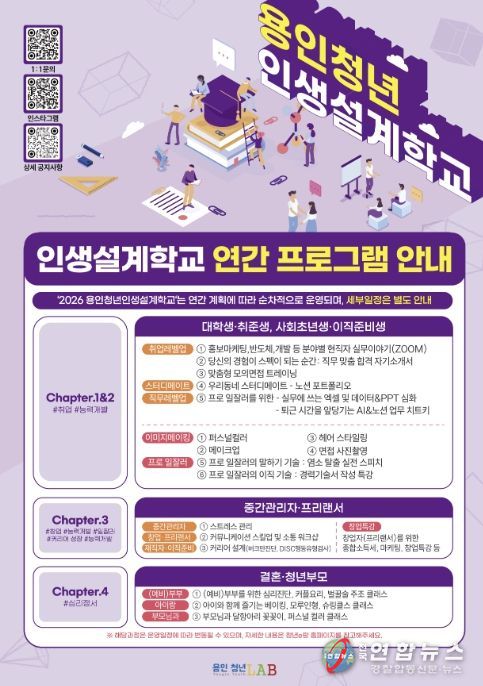 시 관계자는 “용인청년 인생설계학교는 청년의 특정 시기에 국한되지 않고 삶의 전반을 설계해 나가는 생애주기형 프로그램”이라며 “현재 다양한 단계의 교육이 운영되고 있는 만큼, 청년들이 각자의 단계에 맞는 과정을 통해 성장할 수 있도록 맞춤형 지원을 확대하겠다”고 했다.