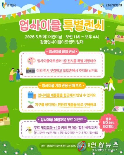전국연합뉴스 조민준 기자 | 광명시 광명업사이클아트센터는 오는 5월 5일 어린이날을 맞아 자원순환 가치를 예술과 체험으로 즐기는 ‘업사이클 특별전시’를 운영한다.