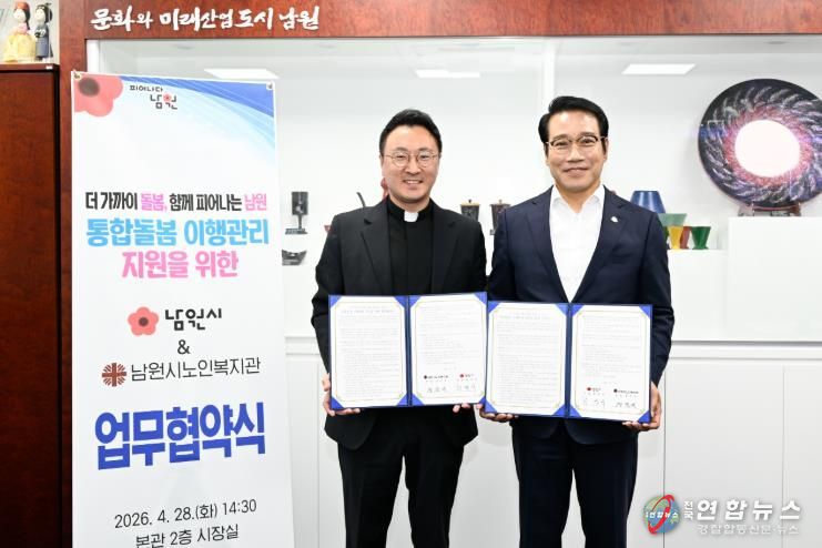 시는 4월 28일 시청 시장실에서 남원시노인복지관과 ‘통합돌봄 이행관리 지원을 위한 업무협약’을 체결했다.