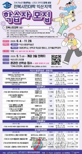 익산시는 오는 5월 1일부터 '2026년 전북시민대학 익산캠퍼스' 학습자를 모집한다고 29일 밝혔다.