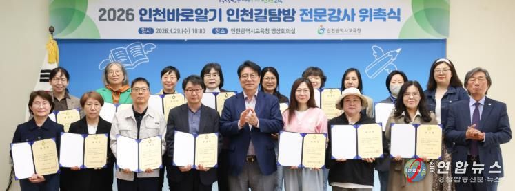 전국연합뉴스 배주현 기자 | 인천광역시교육청은 29일 인천바로알기 관계자 30여 명을 대상으로 ‘2026 인천바로알기 인천길탐방 전문강사 위촉식’을 개최했다.