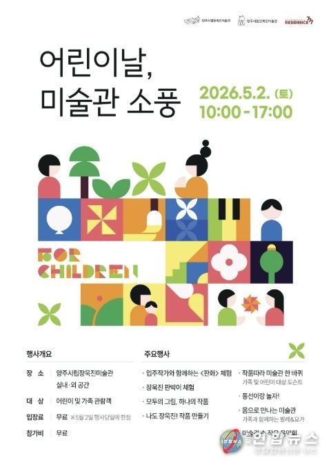 전국연합뉴스 박점규 기자 | 양주시는 오는 5월 2일 양주시립장욱진미술관 실내외 공간에서 어린이날 맞이 가족 문화행사 ‘어린이날, 미술관 소풍’을 개최한다.