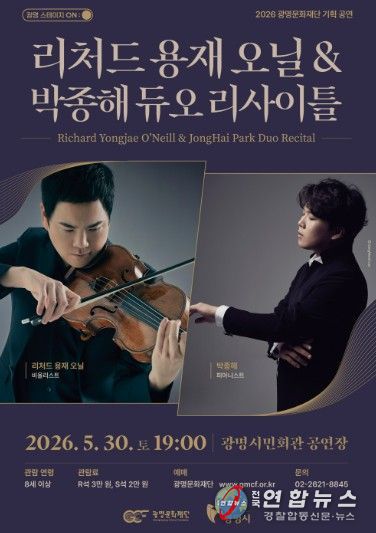 광명문화재단은 오는 5월 30일 오후 7시 광명시민회관에서 ‘리처드 용재 오닐&박종해 듀오 리사이틀’을 개최한다.