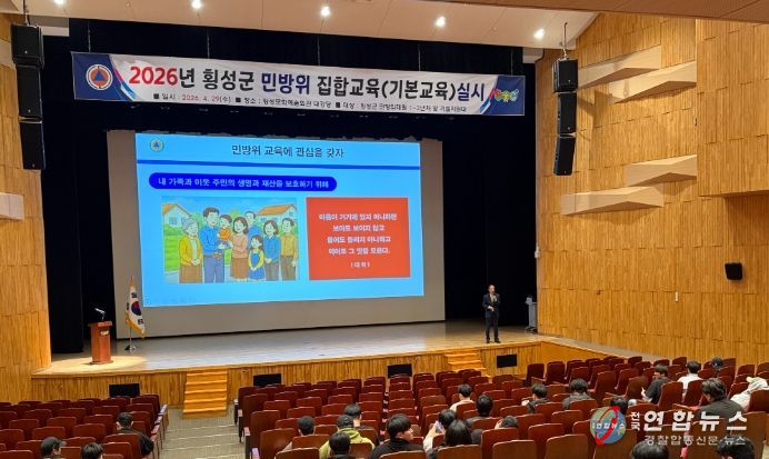 전국연합뉴스 권찬규 기자 | 횡성군이 민방위 대원의 재난 대응 역량 강화를 위해 4월 29일 횡성문화예술회관 대강당에서 ‘2026년 민방위 집합교육’을 실시한다고 밝혔다.
