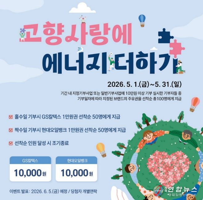 전국연합뉴스 유근택 기자 | 원주시는 고향사랑기부제 활성화를 위해 5월 한 달간 특별 이벤트 ‘고향사랑에 에너지 더하기’를 추진한다.