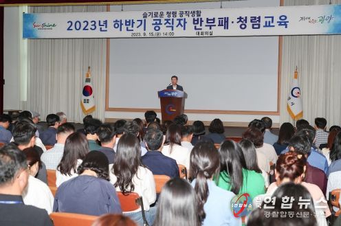 전국연합뉴스 김철환 기자 | 광양시는 지난 15일 청렴한 공직문화 조성을 위해 전 직원을 대상으로 ‘2023년 하반기 공직자 반부패 청렴교육’을 실시했다.