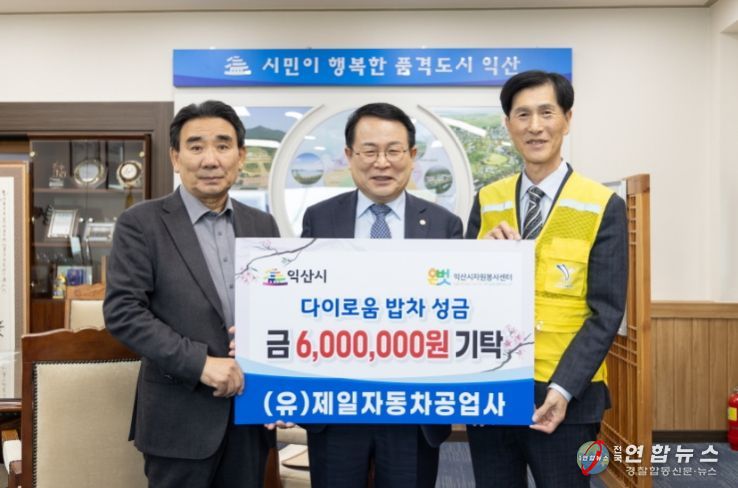 전국연합뉴스 최성용 기자 | 익산시는 (유)제일자동차공업사(대표 양승용)가 12일 익산시청을 방문해 성금 600만 원을 기탁했다고 밝혔다.