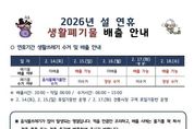 전국연합뉴스 박점규 기자 | 의정부시는 설 연휴 기간 시민들이 쾌적한 환경에서 명절을 보낼 수 있도록 생활쓰레기 관리대책을 수립하고 청소대책 상황실을 운영한다. 시는 이번 대책을 통해 ▲생활쓰레기 수거 일정 조정 ▲기동처리반 운영 ▲청소 사각지대 점검 등을 중점적으로 추진한다. 청소대책 상황실은 2월 14일부터 18일까지 5일간 자원순환과, 의정부도시공사, 5개 청소대행업체가 협력해 운영하며, 연휴 기간 발생하는 생활쓰레기 관련 민원에 신속히 대응할 예정이다. 연휴 기간 생활쓰레기(음식물‧재활용품 포함) 수거 일정은 2월 16일과 18일이며, 전통시장 지역은 연휴 기간에도 매일 수거해 시민 불편을 최소화할 계획이다. 또한 기동처리반을 편성해 상습 무단투기 지역과 청소 취약지를 집중 점검하고, 총 746명의 청소인력과 275대의 장비를 투입해 원활한 수거와 처리를 지원한다. 아울러 2026년 1월부터 수도권 생활폐기물 직매립 금지 제도가 시행됨에 따라 생활쓰레기 감량의 중요성이 커진 만큼, 연휴 기간에도 쓰레기 줄이기 실천을 당부했다. 명절 음식 준비와 선물 포장 등으로 쓰레기 배출이 증가하는 시기인 만큼, 음식