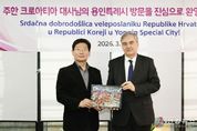 전국연합뉴스 기자 | 이상일 용인특례시장은 19일 오후 기흥구 백남준아트센터에서 열린 국제기획전 ‘불연속의 접점들’개막식에 참석했다. 이 시장은 개막식에 앞서 다미르 쿠센 주한 크로아티아 대사와 30여분 간 환담을 하며 용인특례시와 크로아티아의 도시 간 교류 협력 문제에 대해 의견을 교환했다. 이번 전시는 백남준아트센터와 크로아티아의 수도 자그레브에 위치한 ‘자그레브 현대미술관’이 공동 기획한 국제 전시로, 고(故) 백남준 작가의 예술 정신과 맥을 같이하는 크로아티아 미디어아트 작품들을 소개하는 등 양국 간 문화예술 교류를 강화하기 위해 마련됐다. 전시는 19일부터 6월 14일까지 백남준아트센터에서 진행되며, 크로아티아 작가 15명이 참여해 영상, 설치, 조각 등 다양한 미디어아트 작품 26점을 선보인다. 개막식에는 이상일 시장과 다미르 쿠센 주한 크로아티아 대사, 베스나 메슈트리치 자그레브 현대미술관장, 허남진 경기문화재단 이사장과 유정주 대표이사, 도의원, 문화예술계 인사, 시민 등 250여 명이 참석했다. 이상일 시장은 “백남준아트센터를 찾은 모든 분들의 용인시 방문을 환영한다”