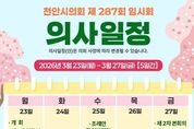 전국연합뉴스 김대환 기자 | 천안시의회가 오는 3월 23일부터 27일까지 5일간의 일정으로 제287회 임시회를 운영한다. 이번 임시회에서는 시정 주요 현안과 시민 생활에 밀접한 조례안 등 총 43건의 안건을 심의할 예정이다. 회기 첫날인 23일 제1차 본회의에서는 5분 발언을 통해 정책 대안을 제시한다. 주요 내용은 ▲충남·대전 행정통합 무산에 따른 지역 영향 점검(이병하 의원) ▲천안시 의용소방대 드론전담팀 도입 및 운영 제안(김철환 의원) ▲천안시 탄소중립 실현을 위한 시민 참여 기반 확대 제언(엄소영 의원) 등이다. 각 상임위원회에서는 ▲천안시 액화석유가스 저장용기 안전관리 등 개선을 위한 지원 조례안 ▲2026년 제1차 수시분 공유재산관리계획안 ▲천안시 장애인 대상 범죄예방 및 피해자 보호에 관한 조례안 ▲천안시 교통약자의 이동편의 증진에 관한 조례 일부개정조례안 등 주요 안건을 심사한다. 천안시의회는 각 상임위 심사를 거친 안건들을 회기 마지막 날인 27일, 제2차 본회의에서 최종 의결하고 폐회할 예정이다.