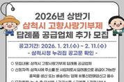 전국연합뉴스 권찬규 기자 | 삼척시는 고향사랑기부제의 안정적인 운영과 지역경제 활성화를 위해 답례품 공급업체 추가 모집을 실시한다고 밝혔다. 신청 자격은 삼척시에 주소를 둔 사업체로서 답례품 공급이 가능한 품목을 생산 또는 배송할 수 있는 업체이며, 통신판매업 신고가 필수다. 모집 품목은 삼척시에서 생산·채취된 농·수·축·임산물과 가공식품, 삼척시 자원을 활용한 공예품, 관광·서비스 상품 등이다. 접수는 2월 9일부터 11일까지 삼척시청 본관 2층 총무과 고향사랑팀에서 방문 접수로 진행된다. 제출서류는 참가신청서, 공급제안서 등이며, 자세한 구비서류 목록은 삼척시 누리집을 참고하면 된다. 공급업체 선정은 서류심사와 필요시 현장평가를 거쳐 답례품선정위원회에서 최종 심의·결정하며, 결과는 2월 말 삼척시 누리집 공고와 함께 개별 통보할 예정이다. 시 관계자는 “지역 특산품과 관광자원을 활용한 다양한 답례품을 마련함으로써 기부자들의 선택 폭을 넓히고, 기부문화가 지역사회에 더욱 확산될 것으로 기대한다”며 “관심 있는 지역 업체들의 적극적인 참여를 바란다”고 말했다.