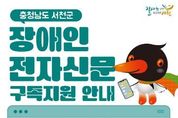전국연합뉴스 김대환 기자 | 서천군은 정보 취약계층인 장애인의 정보 접근성 향상과 알권리 보장을 위해 ‘장애인 전자신문 구독 지원사업’을 오는 3월부터 본격 시행한다. 이번 사업은 관내 거주 등록 장애인 및 보호자를 대상으로 추진되며, 예산 범위 내에서 총 303명을 지원할 예정이다. 특히 정보 접근에 어려움이 큰 시각·청각장애인을 우선 지원한다. 지원 대상자로 선정되면 2026년 3월부터 12월까지 10개월간 장애인 전자신문을 무료로 구독할 수 있다. 전자신문은 월 20회(주 5일, 공휴일 제외) 발송되며, 카카오톡 알림톡, 문자메시지, 이메일 등 원하는 방식으로 받아볼 수 있다. 월 3,300원의 구독료는 전액 군비로 지원된다. 전자신문에는 지역 소식과 복지 정책 정보는 물론, 시각장애인·저시력자를 위한 음성 뉴스, 청각·언어장애인을 위한 영상 콘텐츠 등이 제공돼 장애 유형별 특성을 반영한 맞춤형 정보 서비스를 제공한다. 신청은 2월 26일부터 예산 소진 시까지 가능하며, 읍·면 행정복지센터 방문 또는 QR코드를 통한 온라인 신청으로 접수할 수 있다. 이수미