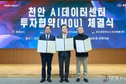전국연합뉴스 김대환 기자 | 천안시가 1.2조 원 규모의 대규모 민간 자본을 유치하며 미래 디지털 산업의 핵심 거점으로 도약한다. 천안시는 29일 충남도청에서 김석필 천안시장 권한대행 부시장, 김태흠 충남도지사, 김용성 ㈜금강 회장이 참석한 가운데 ‘AI 데이터센터’ 건립을 위한 투자협약을 체결했다고 밝혔다. 협약에 따라 ㈜금강은 서북구 직산읍 군서리 일원 10만 2,642㎡ 부지에 2026년 2월부터 2028년 6월까지 총 1조 2,000억 원을 투입해 AI 데이터센터를 신설한다. AI 데이터센터는 160MW급 대규모 전력을 사용하는 시설로, 이미 1차분(80MW)에 대한 전기사용계약을 한국전력과 완료했다. 자금 운용은 파인앤파트너스자산운용이 맡아 사업의 안정성을 뒷받침한다. 김석필 권한대행은 “이번 유치는 천안이 첨단 산업 데이터 허브로 거듭나는 강력한 마중물이 될 것”이라며 “기업의 디지털 전환을 적극 지원해 지역 경제의 혁신 성장을 이끌겠다”고 말했다.