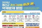 전국연합뉴스 김용태 기자 | 예산군농업기술센터는 식물방역법상 법정 금지병인 과수화상병 확산을 막기 위해 관내 사과·배 재배 농가를 대상으로 11일부터 18일까지 1∼4차 사전방제 약제를 무상 공급한다. 이번에 공급되는 사전방제 약제는 총 4종으로 △개화 전 1차 방제 ‘에스지세균박사’ △개화기 2차 방제 ‘옥싸이클린’ △3차 방제 ‘배차엔진품’ △4차 방제 ‘비온’이다. 효과적인 방제를 위해 1차 방제약제는 사과의 경우 신초 발아 전에, 배는 꽃눈 발아 직후에 살포해야 하며, 개화기 2·3·4차 방제는 기상 관측 정보를 바탕으로 읍·면별 꽃 감염 위험도를 예측해 위험도가 높게 나타나는 시기에 약제를 살포하는 것이 중요하다. 농업기술센터는 방제 효과를 높이기 위해 적절한 방제 시기를 농가에 문자로 안내할 계획이다. 아울러 과수화상병 확산을 막기 위해 방제 적기에 약제를 반드시 살포해야 하며, 발병 시 손실보상 관련 증빙을 위해 농가는 약제 방제 확인서와 살포한 약제 봉지를 1년간 보관해야 한다. 또한 농업기술센터는 ‘2026년 사과 방제력 및 화상병 약제 살포 시기 안내’ 홍보물을 함께