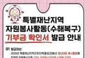 전국연합뉴스 김용태 기자 | 홍성군자원봉사센터는 지난해 군에 기록적인 폭우가 내리며 특별재난지역으로 선포됨에 따라, 수해복구 현장에서 자원봉사활동에 참여한 자원봉사자를 대상으로 ‘특별재난지역 자원봉사용역 등에 대한 기부금 확인서’를 발급한다고 밝혔다. 이번 기부금 확인서는 특별재난지역 수해복구에 참여한 자원봉사자의 봉사활동을 사회적으로 인정하고, 연말정산 및 종합소득세 신고 시 소득공제 혜택을 받을 수 있도록 지원하기 위한 것이다. 발급 대상은 2025년 홍성군 수해복구 자원봉사활동에 참여하고, 1365자원봉사포털에 수해복구 관련 봉사시간이 입력된 자원봉사자이며, 신청은 내달 13일까지이다. 신청을 희망하는 자원봉사자는 홍성군자원봉사센터 공지사항을 참고하여 기부금 확인서 서식을 내려받아 파란색 표시된 항목을 작성한 후, 기관 이메일(cnvc14@v1365.or.kr)로 제출하면 되고, 방문 접수를 희망할 시 센터로 직접 방문하거나, 가까운 읍·면행정복지센터에 제출하면 된다. 발급된 기부금 확인서는 연말정산 시 소득공제 항목에 기재하여 증빙자료로 제출하거나, 종합소득세 신고 시 활용할 수 있다. 기부