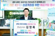 전국연합뉴스 김철환 기자 | 김영록 전라남도지사는 26일 APEC 정상회의 성공적 개최를 기원하고 영호남 상생협력을 위해 ‘APEC 성공 기원 특별예금’ 가입 릴레이 캠페인에 참여했다. 이번 특별예금은 APEC 정상회의 성공을 응원하는 전 국민 참여형 금융상품으로, 가입 기간은 1년이다. 1인당 100만 원 이상 3천만 원 이내에서 가입할 수 있다. 김영록 지사는 이날 NH농협은행 전남도청지점을 방문해 예금에 가입하고, “APEC 정상회의의 성공적 개최를 진심으로 응원한다”며 “앞으로도 다양한 분야에서 영호남 상생협력을 적극 추진하겠다”고 말했다. 김영록 지사의 예금 가입은 개최지인 경상북도를 제외한 전국 광역지자체장 최초로, 타 지자체장들의 가입 릴레이 참여 분위기를 조성하는 데 기여할 것으로 기대된다.