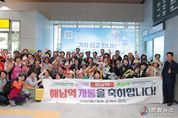 전국연합뉴스 김철환 기자 | 땅끝해남에 철도시대가 열렸다. 전남 서남해안 권역을 연결하는 보성~목포 철도가 27일 개통했다. 27일에는 신설된 해남역에서 철도 개통을 축하하는 기념행사가 개최됐다. 오전 8시 2분 목포역을 출발해 31분만에 해남에 도착한 새마을호의 첫 방문객에게 꽃다발 증정한데 이어 오전 7시 48분 부산을 출발해 낮 12시 25분 해남에 도착한 남도해양관광열차(S-train) 단체여행객을 대상으로 환영식이 진행됐다. 단체 여행객은 해남군의‘열차타고 코리아둘레길 걷기 여행’참가자들로, 9월 27일부터 28일까지 1박2일 해남에서 서해랑길 트레킹 프로그램에 참가한다. 명현관 군수는“부산에서 기차를 타고 오신 관광객들을 해남역에서 맞이하게 되어 감개무량하다”며“앞으로 기차를 통해 영호남, 나아가 전국을 잇는 땅끝 해남의 새로운 관광시대가 열리게 될 것”이라고 전했다. 해남군은 ‘사통팔달 교통망 확충’을 통해 땅끝해남이라는 지리적 불리함을 극복하기 위해 철도·고속도로·지방도 확장 등에 속도를 높이고 있다. 이번 철도 개통으로 남해안 권역 철도망이 완성