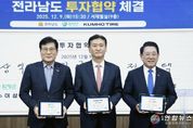 전국연합뉴스 김철환 기자 | 전라남도는 9일 도청 서재필실에서 금호타이어㈜와 미래형 스마트 타이어 생산기지 구축을 위한 6천609억 원 규모의 투자협약을 했다. 협약식에는 김영록 전남도지사와 금호타이어㈜ 정일택 대표이사, 임완주 경영기획본부장, 이상익 함평군수 등이 참석했다. 전남도는 이번 협약이 함평에 새로운 핵심 거점기업을 안착시키고, 지역 경제 활성화를 이끌 중요한 동력이 될 것으로 기대하고 있다. 미래차 시대에 부합하는 고성능 타이어 생산기반을 구축해 지역 산업 경쟁력을 강화하고, 생활인구 유입 확대에 따른 소비 증가와 정주여건 개선으로 지역 상권과 생활경제 전반에 새로운 활력을 불어넣을 전망이다. 또한 금호타이어㈜는 지역 앵커기업으로서 연관 소재·부품·장비 기업과 협력업체의 투자 유입을 촉진해 전남 미래차 산업 생태계의 중심축 역할을 할 것으로 기대된다. 이번 협약에 따라 금호타이어㈜는 2025년부터 2028년까지 1단계로 6천609억 원을 투입, 함평 빛그린국가산업단지에 미래형 스마트 타이어 생산공장을 설립한다. 전 제조공정에 스마트 자동화 설비를 도입하고, 친환경 생산 체계를 구축해 생