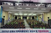 전국연합뉴스 김현호 기자 | 김제시는 지난 8일 시청에서 ‘김제시 지역자율방재단 발대식’을 개최하고, 지역자율방재단이 지역사회 재난에 선제적으로 대응하는 핵심 주체로서 본격적인 활동을 시작했다고 밝혔다. 772명으로 구성된 김제시 지역자율방재단은 '재난 및 안전관리 기본법'에 따라 지역 주민이 직접 참여해 재난을 사전에 예방하고 초기 대응을 지원하기 위해 조직된 단체다. 평상시에는 재해 취약지역 점검, 안전 캠페인, 계절성 자연재난 대비 활동을 진행하고, 재난 발생 시에는 주민 대피 안내 등 초기 대응을 수행해 지역의 안전망 강화에 중요한 역할을 하고 있다. 이 날 발대식은 정성주 시장의 인사말로 시작해 시민 안전을 위해 활발히 활동할 자율방재단의 역할에 기대감을 전했다. 이어 서백현 김제시의회 의장의 축사와 채동수 자율방재단장의 발대 선서문 낭독이 진행되면서, 김제시 지역자율방재단의 본격적인 단체 활동 시작을 공식적으로 알렸다. 발대식 후에는 공하성 우석대학교 소방방재학과 교수가 재난 대응 역량 강화 교육을 진행해 단원들의 실질적인 현장 대응 능력을 높이는 시간을 가졌다.