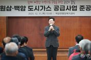 전국연합뉴스 박남호 기자 | 용인특례시는 11일 처인구 원삼·백암면 주요 지역에 도시가스 공급이 이뤄짐에 따라 용인 전 지역에 도시가스 공급 기반을 마련했다고 밝혔다. 시는 시비 100억원, ㈜삼천리 100억원 등 총사업비 226억원을 들여 올해 12월까지 원삼·백암면 주요 지역에 도시가스를 공급하는 사업을 추진했다. 시는 원삼면 좌항·사암·두창리를 시작으로 백암면 근창리까지 약 1700세대, 도시가스 공급관 50.5km를 연장했다. 그동안 원삼·백암면 주민들은 도시가스가 연결되지 않아 LPG를 사용하는 등 일상생활에서 불편을 겪어 왔다. 시는 추가적으로 2029년까지 백암지역 930세대에 도시가스 보급을 확대할 계획이다. 이날 백암면행정복지센터에서 열린 ‘원삼·백암 도시가스 공급사업 준공식’에는 이상일 시장, 김정태 ㈜삼천리 전무이사, 원삼·백암면 이장협의회와 지역 주민 등 100여 명이 참석했다. 준공식에서는 도시가스 공급사업 경과보고와 유공자 포상 등이 이뤄졌다. 도시가스 사업에 적극 협력한 공로로 김영열 전 사암6리 이장과 정의석 백암1리 이장이 시장 표